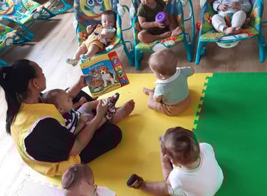 Atendemos crianças de 3 meses a 5 anos, proporcionando um ambiente acolhedor e estimulante.